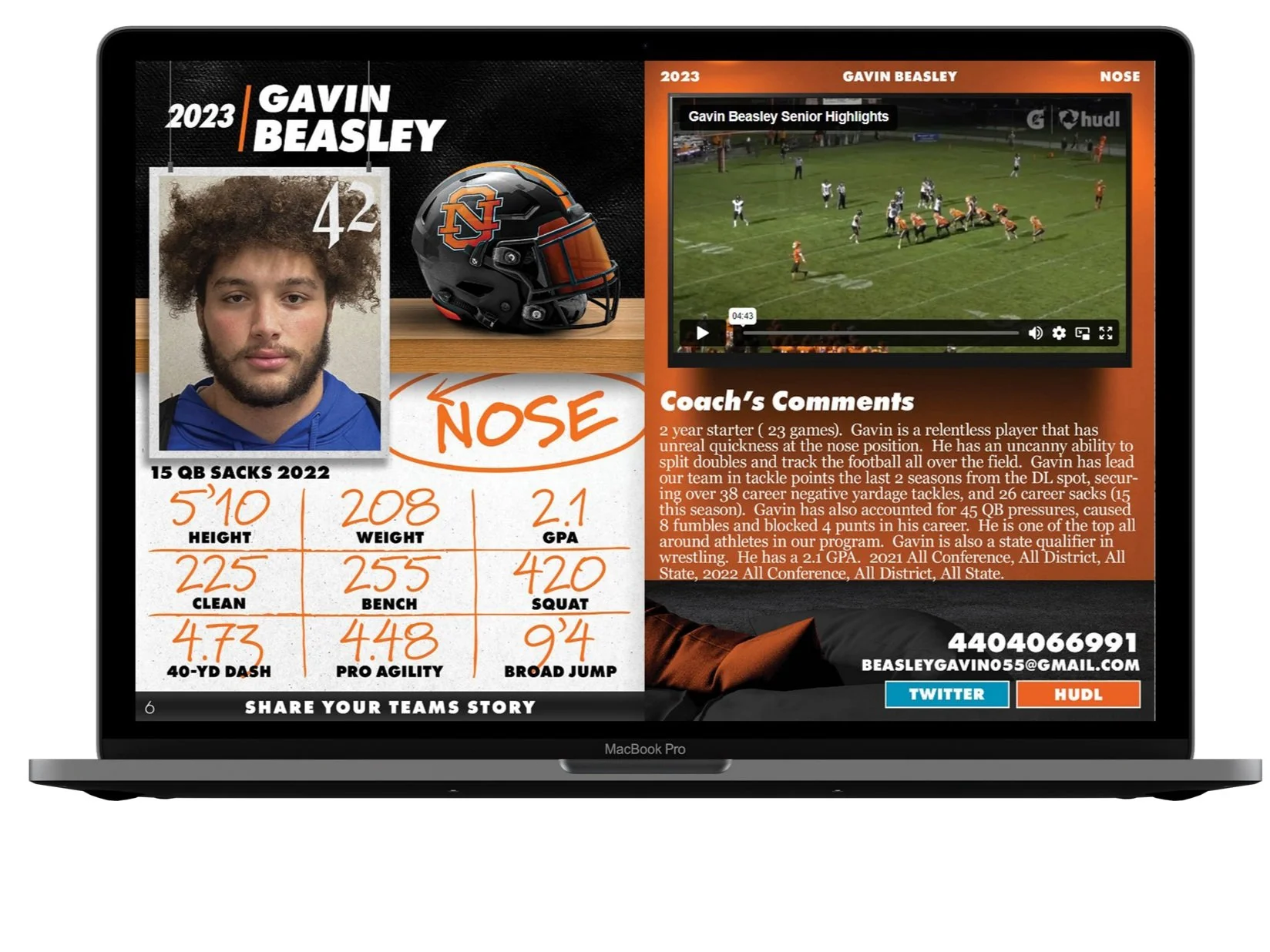 We design an interactive digital magazine showcasing your players’ video highlights, athletic and academic stats, social media links and more. Recruiting Profiles is a comprehensive digital platform that showcases your players to college coaches and puts your program on the map! Are you still sending coaches a spreadsheet and hudl links? Instead, send them a comprehensive, professional and interactive catalog of all your recruits with all the video, stats, academic info and contact info in one place! Contact us today and get recruiting profiles for your program in less than 2 weeks from signing up!
